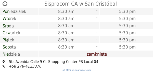 🕗 godziny otwarcia