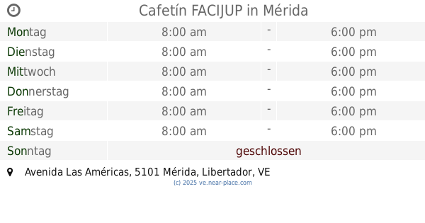 | Dienstag | 24 stunden geöffnet | |||||